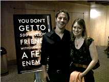 Yesterday, I attended the cast & crew screening of The Social Network with my husband, Toby Meuli, who plays a supporting role in the film. I’ve been so excited to see it, and my expectations were blown away! We both thought the film was superbly written, directed, and acted!